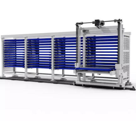 El sistema está diseñado para acomodar tamaños de panel grandes, con especificaciones que soportan anchos de hasta 3000mm x 1500mm. Al almacenar estos paneles verticalmente en compartimentos dedicados, el sistema protege la integridad de la superficie del metal. La configuración de «Mono Torre» es particularmente efectiva aquí, actuando como una unidad de almacenamiento en el punto de uso. Un fabricante puede colocar una Mono Torre directamente junto a una máquina de corte láser. El sistema almacena la chapa de metal en bruto y alimenta la máquina bajo demanda, creando una célula de trabajo simplificada y automatizada.